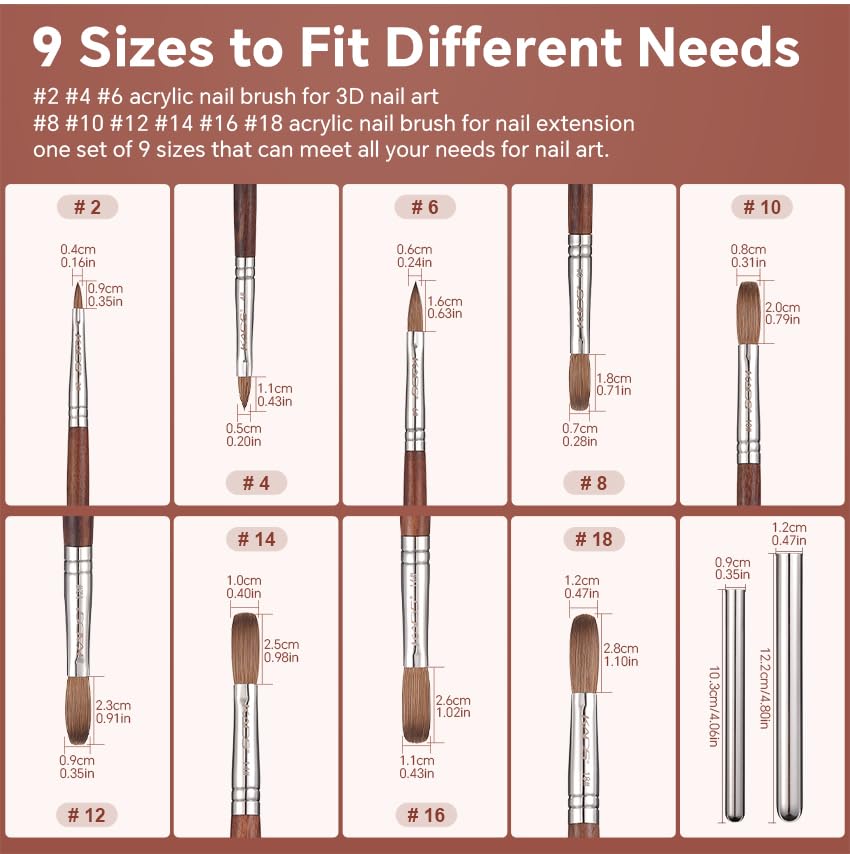 - KADS provides 8 types of brushes, including 2 # 4 # 6 # 8 # 10 # 12 # 14 # 16 # 18 #, to meet your different needs for painting, lining, 3D construction, extension, and more.