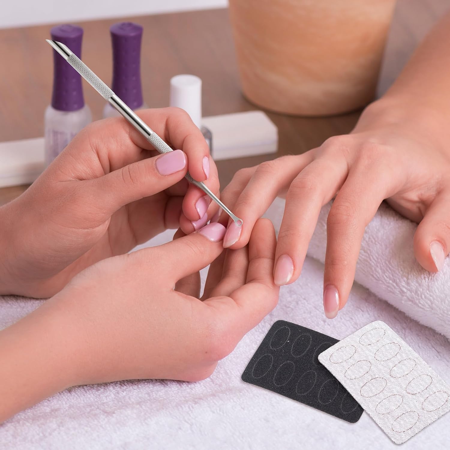 - Package List: You will get 1 pcs cuticle pusher tool with 2 pcs black 240# grit nail files, 2 pcs grey 100# grit nail files, suitable for nail care. It is an ideal tool for cleaning nails
